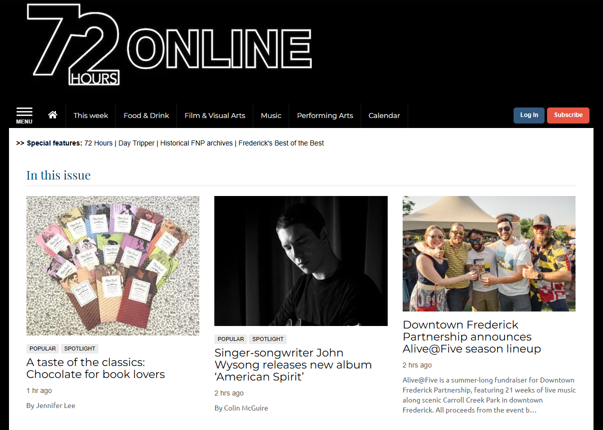 Frederick News Post’s 72 Hours. May 13, 2025.(Click on one of the Images below to read) Jammin Java’s Band Battle #29 Preliminary - Night 1. July 1, 2025.(Click on one of the Images below) PAST SHOW FLIERS: